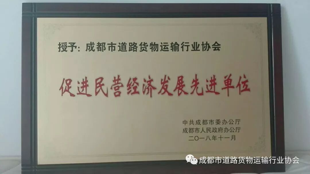 成都市道路货物运输行业协会荣获2018年成都市促进民营经济发展先进单位